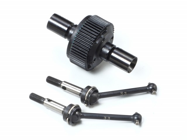 ★Left: One of the key points is the easy-access differential unit, which can be removed and changed from the underside.★Right: Enjoy silky-smooth power from your chassis thanks to full ball bearings, universal drive shafts and gear differential unit. |