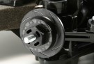 The shaft-driven 4WD TT-02 chassis employs a longitudinal layout with the battery on the left and the motor on the right, to give excellent stability. In addition, it features identical left and right suspension arms and uprights for ease of assembly, plus easy-to-maintain gearboxes. It is a highly adaptable chassis, as it offers 2 different wheelbases, 2 ground clearance settings and 2 tread set-ups in addition to a range of 10 possible gear ratios. It is not short on looks either, with brake disc-shaped wheel hubs and stylish front bumper supports.