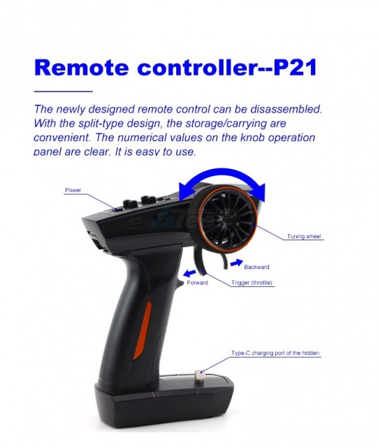 • 1:76 RC big foot car, packed with P21 4CH remote, which handle can remove;