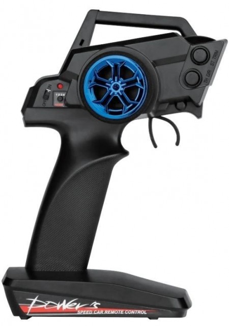 Bilen leveres med ett 2S 2200mAh LiPo-batteri med Deans-type kontakt. Det følger med lader til dette batteriet. Radio/Sender trenger 4stk AA-batterier, dette må kjøpes i tillegg.