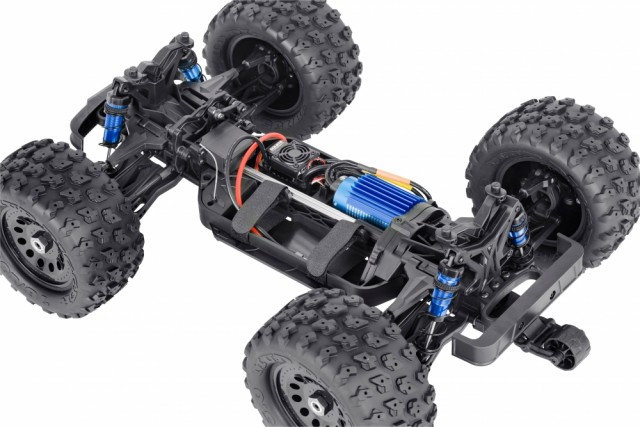 Den er levert med 120A Hobbywing ESC, kraftig 3674 motor på 2950KV. Splashproof servo på 15Kg trekk kraft, og 2.4GHz Flysky radio med splashproof mottaker.