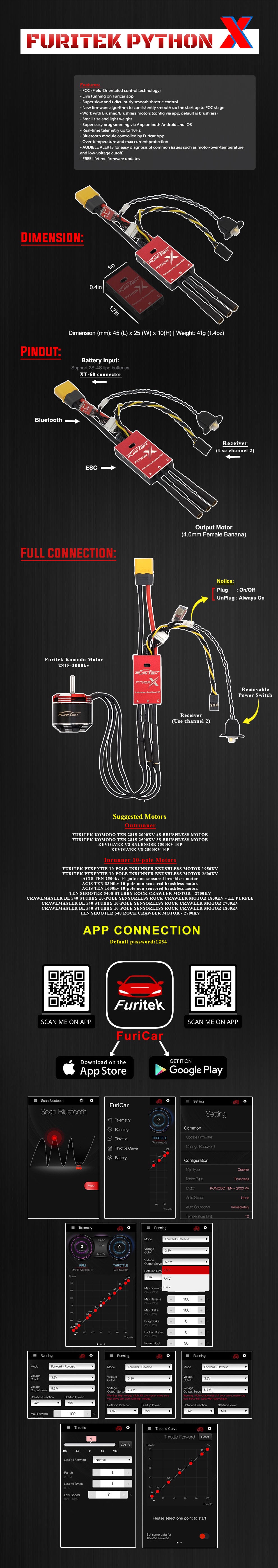 FURITEK PYTHON X 80A/120A BRUSHED/BRUSHLESS ESC FOR 1/10 RC CRAWLERS WITH BLUETOOTH