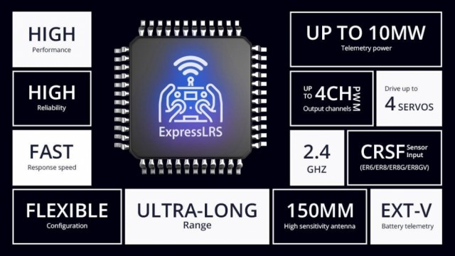 Radiomaster ELRS ER4 4ch PWM Receiver 2.4GHz er en bitteliten mottaker som kan brukes i det meste av radiostyrte fly og annet radiostyrt med ELRS protokoll. Mottaker leveres med 15cm lang antenne og veier kun 3gram.