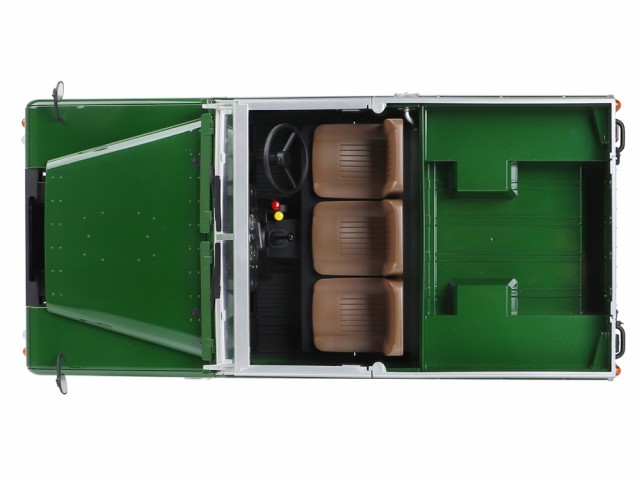 - Full interior with a dash, floor panel with seats, gear stick, hi/low stick, 2WD/4WD stick, handbrake, pedals