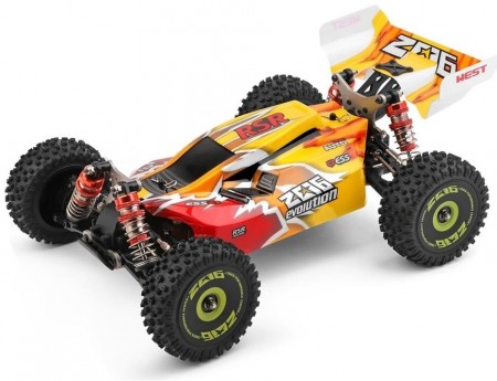 WL-144010.2002 Car Shell Red/Yellow. Passer til WLToys buggy 1/14 børste og børsteløs. Leveres som karosseri og vinge.