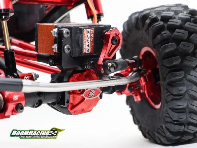 Boom Racing AR44 Axle Mounted Servo Conversion Kit w/ 4-Link Truss Black for Axial SCX10 II PrisNOK245,00 inkl. mva. På lager: 2 stk. Antall Kjøp Ønskeliste Lagerstatus: På lager: 2 stk. Artikkelnr.: BR955026BK Produsent: Boom Racing Del dette Produktinfo Produktanmeldelser (0) This is a dual purpose axle conversion kit for the front AND the rear AR44 axle.Convert the Axial SCX10 II chassis mounted servo (CMS) to axle mounted servo (AMS)ANDConvert the AR44 axle to run counter-rotational transfer case (to eliminate torque twist) by flipping the axle upside-down so the ring gear sits on the opposite side for the axle (can be front or rear axle)You may convert both using one axle (the front axle) to achieve the above two conversions (CMS to AMS and Counter-Rotation). If you only want a Counter-Rotation conversion, you have the option to do this in the rear axle by flipping the axle upside-down, file down the link mounts and install our axle and link mount.Advantages of Axle Mounted Servo: Takes away the bump steer Quicker steering response More precise steering and turning angle Stronger steering More weight down low for better handling Will fit stock plastic Axial SCX10 II AR44 axle housing with some DIY modifications (see manual).The aluminum 4-link truss mount is used to swap the axle up-side-down if you run a counter-rotational transfer case (to eliminate torque twist).---------------------------------------------1. To mod the AR44 axle (CMS to AMS): For Boom Racing AR44 PHAT Axle, the mount will fit directly on the without any modifications. For plastic AR44 axle, following these three steps:1.1 Cut away the two tabs on the front of the axle housing1.2 Align the truss on the axle housing and use a 2.0mm drill bit to open four holes all the way through.1.3 Use the four M2.5 X 12mm socket head screws provided to secure the truss onto the housing.Note: For more precise drilling, after drilling the first hole, tighten the bolt to secure the mount. Then drill the second hole, and so forth.---------------------------------------------2. To mod and install the 4-link Truss:2.1 File down or cut away the 4-link axle mount on the axle.2.2 Reverse the axle 180 degree (or turn it upside-down) and install the brace with truss (see picture for result).2.3 If you are converting a plastic axle, follow Steps 1.2 and 1.3 now.---------------------------------------------Includes:1x Aluminum Servo Mount1x Aluminum Axle Truss Mount1x Aluminum Link Mount4x M2.5x12mm Socket Cap Screw2x M3x10mm Round Socket Head Screw4x M3x12mm Round Socket Head Screw2x M3x20mm Counter Sink Screw6x M3 Locknuts1x ManualTo convert to AMS from CMS you will need:1x front upper link 71mm (2x if you want to match the front upper links)1x drag link (upper steering link) Color: Black Package total weight: 36.00 grams (incl. packaging) Factory description: Boom Racing Axial SCX10 II AR44 Axle Servo Mount w/ 4-Link Truss Manufactured by Boom Racing Manufacturer number: BR955026 Skriv en produktanmeldelse og del dine erfaringer med dette produktet med andre kunder. Email Navn Din vurdering? 1 star 2 star 3 star 4 star 5 star 6 star Oppgi en tittel for anmeldelsen din Skriv inn produktanmeldelsen i feltet under