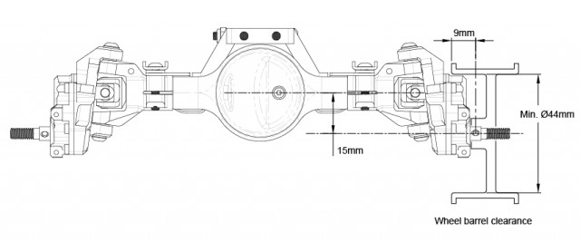 - Requires 44mm / 1.73" wheel barrel clearance (to clear the entire portal gearbox)