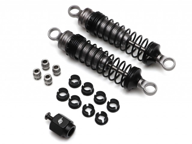 This is a pair of KUDU Big Bore 80mm coilover scale shock absorbers. Every aspect of these shocks has been optimized to deliver scale performance and precision adjustability.