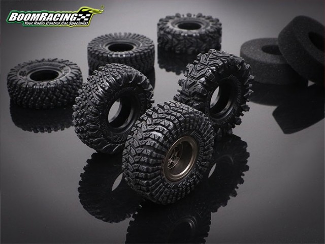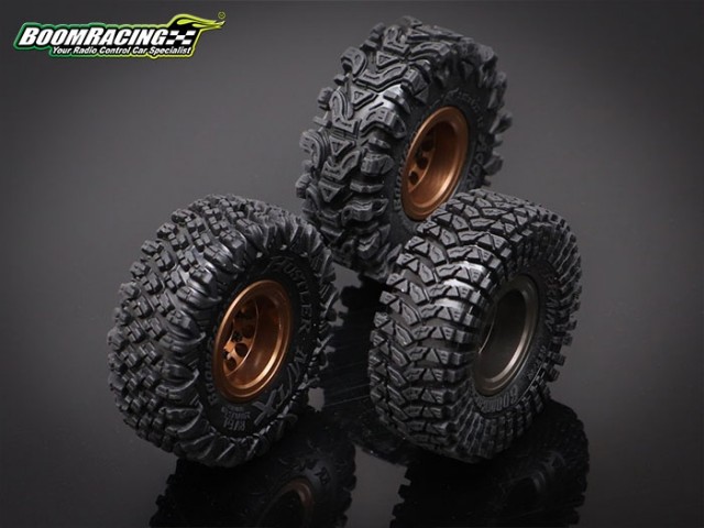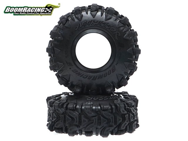 This is a pair of Boom Racing AGGRESSOR™ 1” Rock Crawling Tires. GEKKO™ compound is soft and sticky. It is developed specifically for RC crawling & trailing.