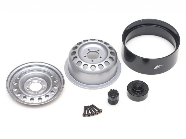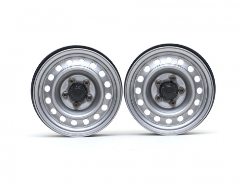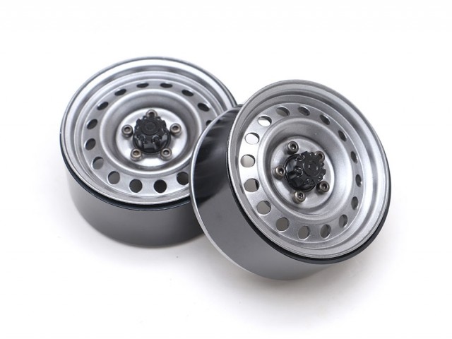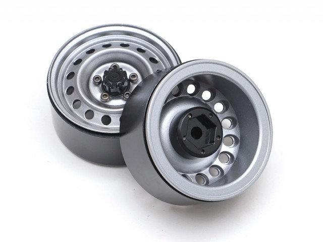 This is a set of front reversible 1.9" 16-hole steelie beadlock wheels (2). Perfect for 1/10 scale truck builds.