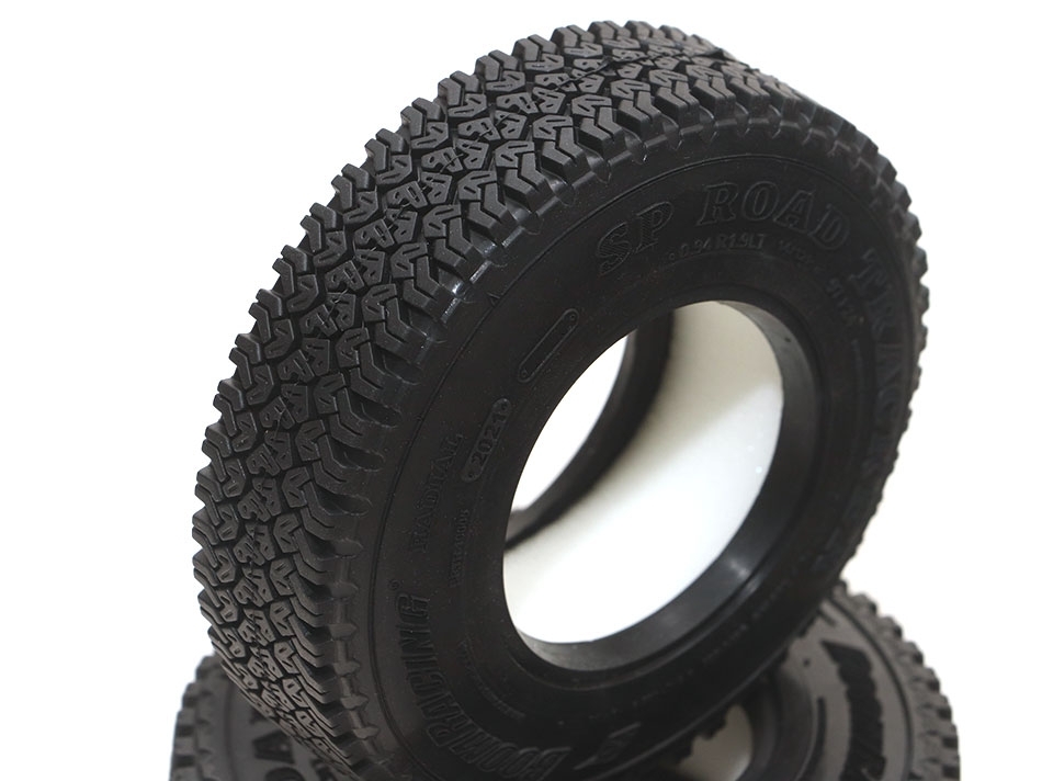 This 1.9" SP Road Tracker SCALE RC tire is a replica of 1:1 tire. The narrow track at 0.94" (24mm) is the perfect size for builds such as the LR Defender or any older vehicles. Build the ultimate project with the 1.9" SP Road Tracker tire!