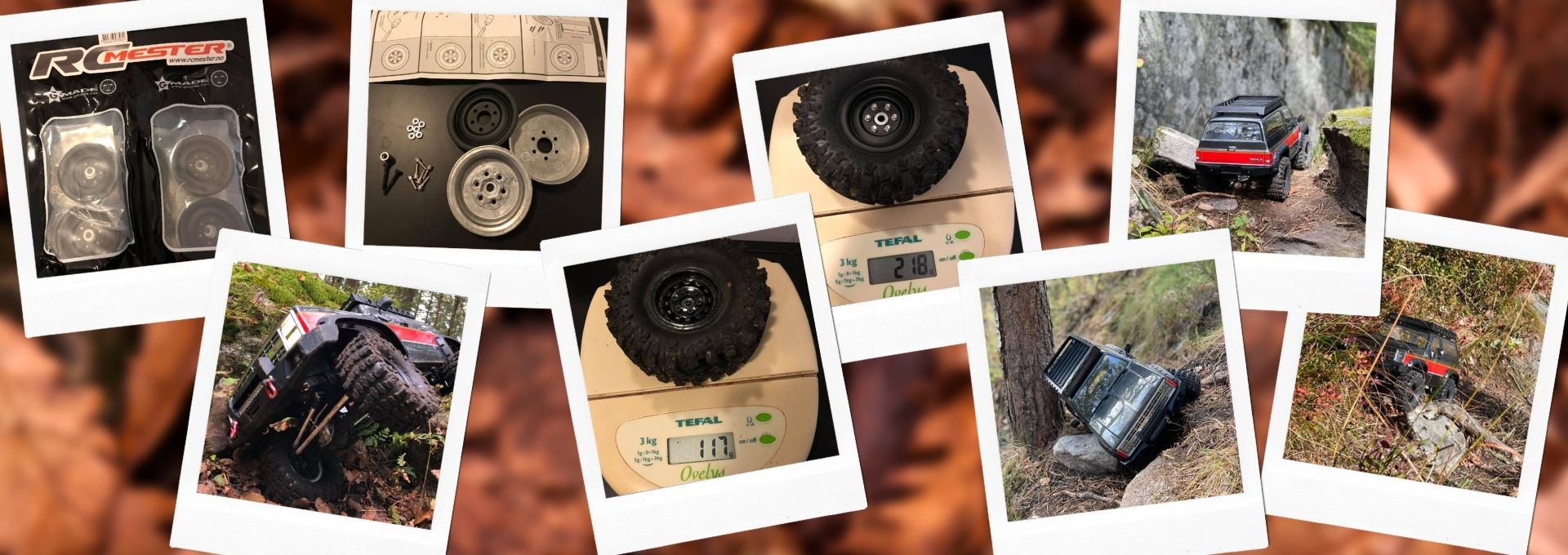 Ytterligere 404 gram ned mot bakken fikk mye å si. Bedre balanse i bilen og holder hjulene mye lettere ned mot underlaget i bratte stigninger og hinder. Sidestabiliteten forbedret seg kraftig og hiver seg ikke så lett rundt som før. Felgene er i tillegg billige, enkle å montere og det ser mer skala ut med skikkelige stålfelger.