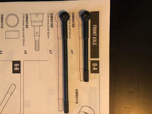 Som nevnt tidligere, synes jeg dempere og fjærer var noe for harde som standard oppsett. Demperoljen som følger med i byggesettet antar jeg er 30WT og skal i utgangspunktet fungere bra til allround crawling/trail kjøring. Og siden bilen spretter litt for mye er det nok fjærene som rett og slett er for harde. Står ikke hvilket fjærspenn de har og er heller ikke merket med fargekoder, slik som option parts fjærene til Gmade har. Og ved å rote litt i mitt eget delelager, fisket jeg frem noen std.fjærer jeg hadde liggende til Traxxas TRX-6. Disse fjærene er en del mykere enn Gmade sine std.fjærer, så her er det bare å prøve seg frem.