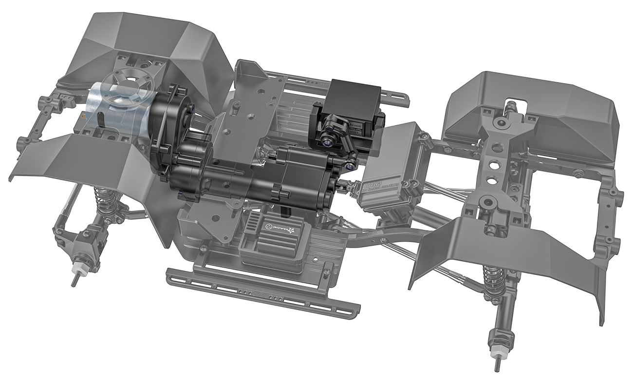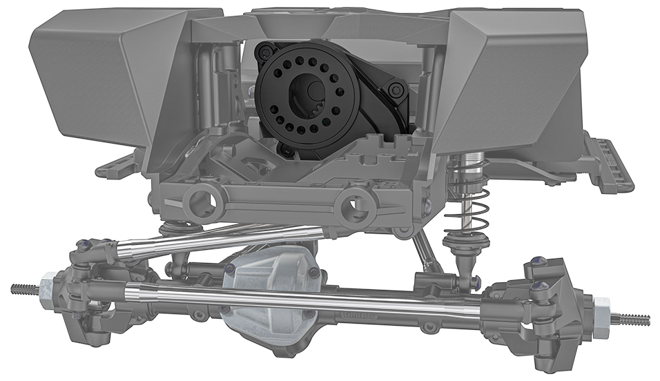 - GA44 axle is designed with the hardcore rock crawler in mind. Axles are made of high-strength meterials, and it will look and perform optimum off-road perfermance as real 1:1 vehicle when 4-Link suspensions added.