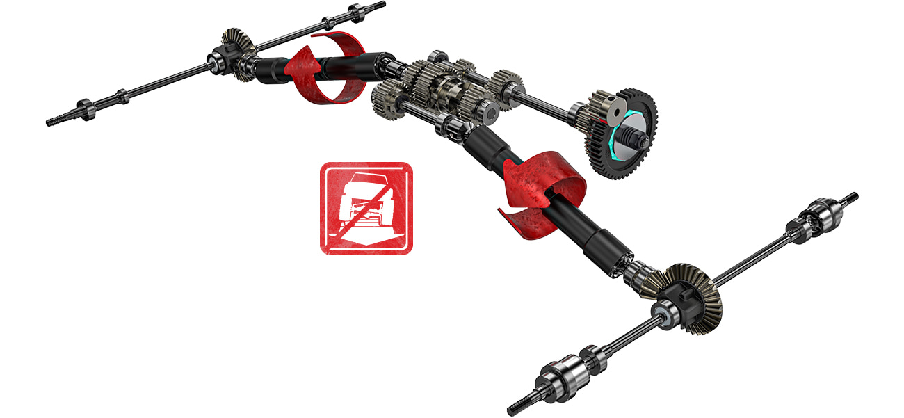 - Vehicles with overdrive on the front axle has an improved steering radius compared to non-overdrive vehicles, making it easier to control when driving on the rough surfaces.