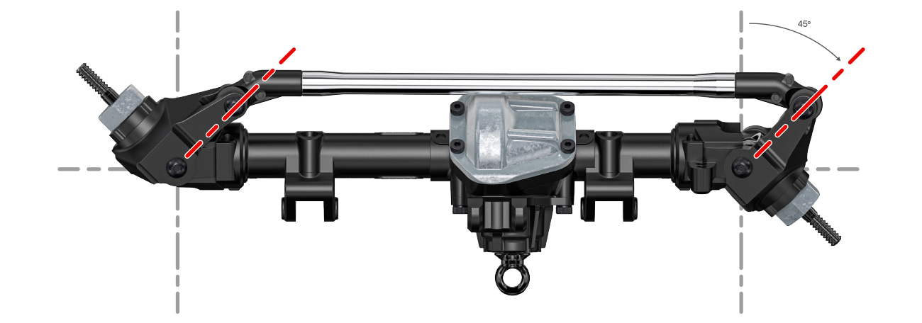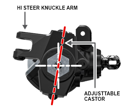 - The GA44 front axle can be adjusted to the steering style to have a smooth and short turn angle depending on the driving style or to adjust to improve straight stability by changing the caster angle.