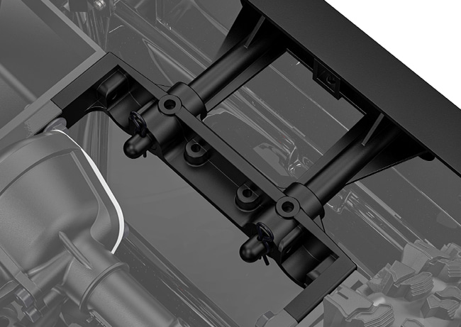 The GA44 axle housing is a durable one-piece type. The angle of the differential cover is designed to reduce the risk of damage due to frontal impact and is therefore very suitable for off-road driving.
