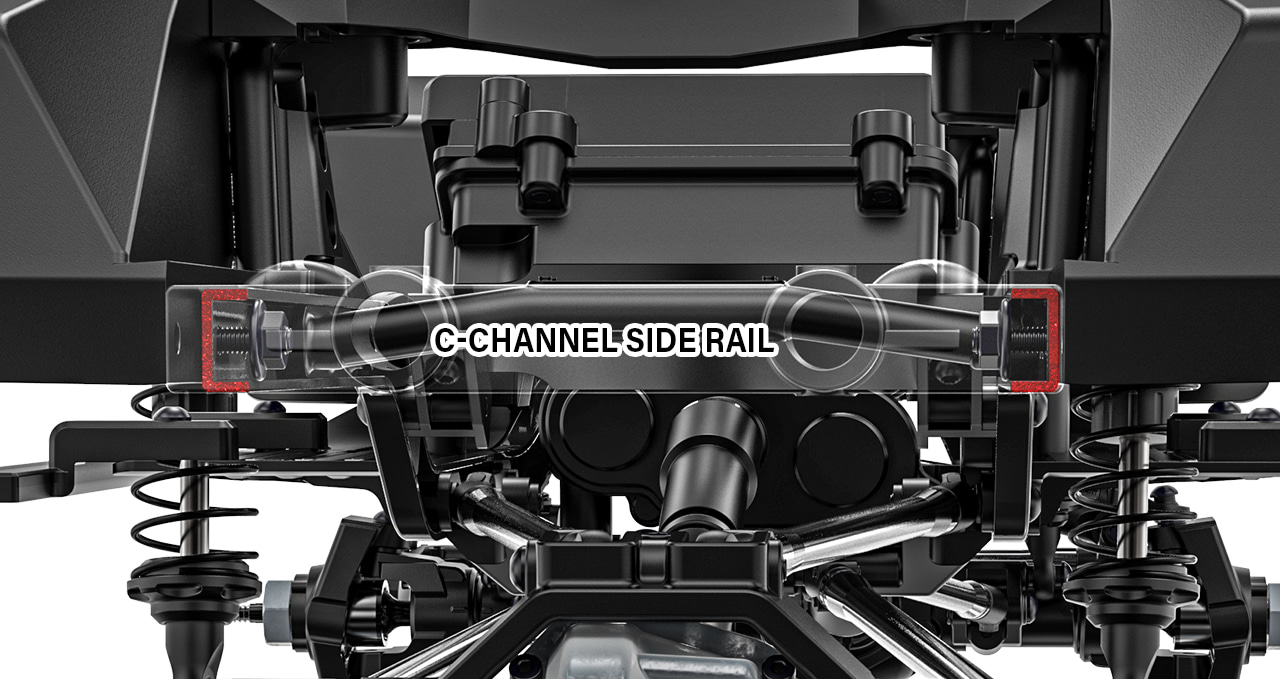 - GS02F frame is designed to look as a chassis of a real car frame and the material of the frame is made of high strength steel, C-channel side rail and is with hex wrench bolted with cross members, which make it resistant to twisting or wraping. Also, steel parts are black powder coated finish to prevent rust.