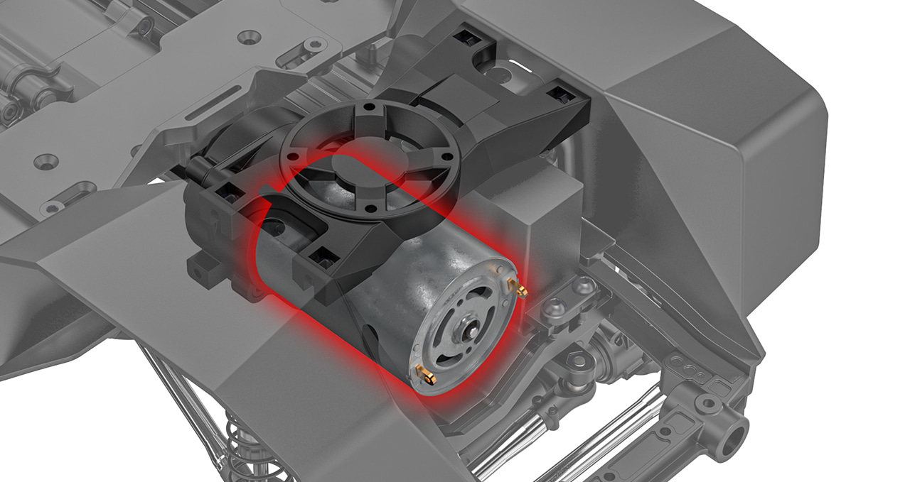 - Able to use 540 or 550 size motor with cooling fan with option.