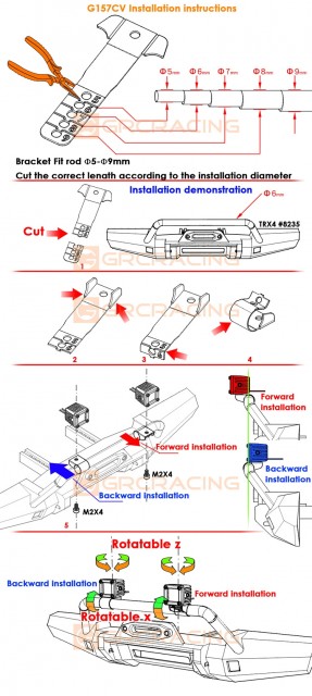 • Factory description: GRC Axial SCX10 5-9mm Various Directions Spotlight Bracket for Front Bumper Spotlight (2)