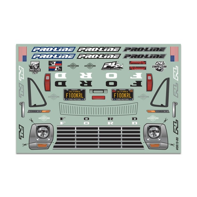 The F-100 is Made in the USA from high-quality polycarbonate and includes a detailed decal sheet, window masks and paint-then-peel overspray film. Hit the trails today with the 1967 Ford® F-100 body from Pro-Line!
