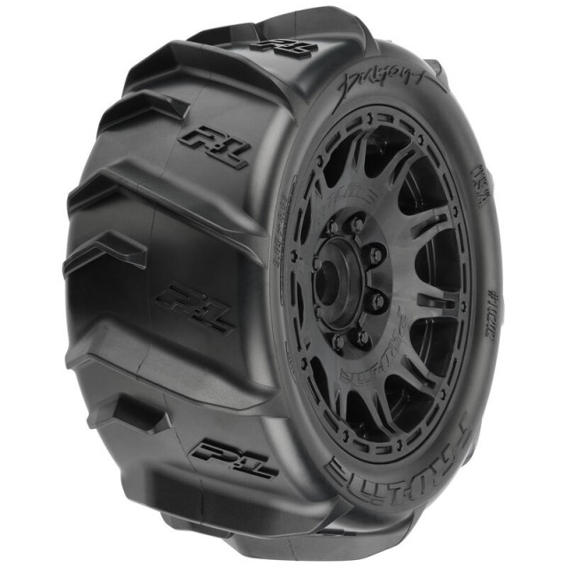PRO1020210 | Dumont Paddle Sand/Snow Tires Mounted on Raid 5.7" Black Wheels (2) for X-MAXX®, KRATON™ 8S & Other Large Scale 24mm Hex Vehicles Front or Rear