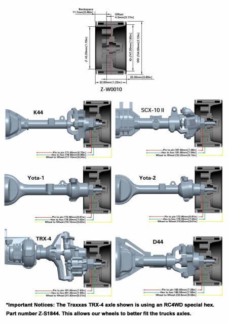 Shown installed with RC4WD Milestar Patagonia M/T 1.9" 4.7" Tires (Z-T0184) for example (Not Included) Shown installed on SCX10 III Jeep JT Gladiator Rock Crawler with RC4WD Milestar Patagonia M/T 1.9" 4.7" Tires (Z-T0184) for example (Not Included) Shown installed on SCX10 III Jeep JT Gladiator Rock Crawler with RC4WD Milestar Patagonia M/T 1.9" 4.7" Tires (Z-T0184) for example (Not Included) RC4WD Center Line 1.9in Warrior Deep Dish Wheels (4 stk) Centerline Deep dish felger! PrisNOK1 999,00 inkl. mva. På lager: 1 stk. Antall Kjøp Ønskeliste Lagerstatus: På lager: 1 stk. Artikkelnr.: Z-W0010 Produsent: RC4WD Del dette Produktinfo Produktanmeldelser (0) RC4WD Center Line 1.9" Warrior Deep Dish Wheels These are the all new Licensed RC4WD Centerline 1.9" Warrior Deep Dish Wheels. These have been Officially Licensed by Center Line Wheels and are only available from RC4WD and our Dealers. Specifications: CNC Machined Billet Aluminum Silver Anodized Finish Fits Standard 12mm Hex Wheel Size: 1.9" OD: 2.12in / 54.0mm Width: 1.25in / 32.0mm Center Hole OD: 0.20in / 5.2mm Negative Offset: 0.17in / 4.3mm Each Wheel Weighs: 2.88oz / 81.7g What's Included: 4x RC4WD Centerline 1.9" Warrior Deep Dish Wheels 1x Centerline Decal Sheet 1x Miniature Scale Hex Bolt Tool for M2.5 & M3 Scale Bolts (2.5mm Hex) (Z-S0635) Replacement Hardware: RC4WD Miniature Scale Hex Bolts (M2.5 x 6mm) (Silver) (Z-S0663) Flat Head Cap Screws M2.5 x 6mm (Silver) Miniature Scale Hex Bolt Tool for M2.5 & M3 Scale Bolts (2.5mm Hex) (Z-S0635) Notes: Fits RC4WD Gelande II Truck Kit w/Cruiser Body Set (Z-K0051) Fits RC4WD Gelande II Truck Kit 1/10 Chassis Kit (Z-K0060) Fits RC4WD Gelande II RTR W/ 2015 Land Rover Defender D90 Body Set (Heritage Edition) (Z-RTR0044) Fits RC4WD Gelande II RTR W/ 2015 Land Rover Defender D90 Body Set (Autobiography Limited Edition) (Z-RTR0043) Fits RC4WD Marlin Crawler Trail Finder 2 RTR w/Mojave II Crawler Body Set (Z-RTR0034) Fits RC4WD C2X Class 2 Competition Truck w/ Mojave II 4 Door Body (Z-RTR0042) Fits RC4WD Trail Finder 2 RTR w/Chevrolet Blazer Body Set (Limited Edition) (Z-RTR0035) Fits RC4WD Trail Finder 2 Truck Kit "LWB" 1/10 Scale Long Wheel Base Chassis Kit (Z-K0059) Fits RC4WD Trail Finder 2 Truck Kit "LWB" w/ Mojave II Four Door Body Set (Z-K0058) Fits RC4WD Trail Finder 2 Truck Kit (Z-K0054) Fits RC4WD Trail Finder 2 Truck Kit w/Mojave II Body Set (Z-K0049) Fits Vaterra Ascender Fits HPI Venture FJ Cruiser Fits Axial SCX10 II Fits 1/10 SCX10 III Jeep JT Gladiator Rock Crawler Due to many different methods to design tires and wheels, we have no control over other manufacturers products, so we can only tell you that RC4WD tires and wheels work together. In some cases, our wheels and tires will work with other brand wheels and tires, but we can not guarantee the outcome. Centerline is a registered trademark of the Center Line company. The Center Line logo is property of Center Line Wheels.Click here to download the RC4WD full wheel comparison list. Skriv en produktanmeldelse og del dine erfaringer med dette produktet med andre kunder. Email Navn Din vurdering? 1 star 2 star 3 star 4 star 5 star 6 star Oppgi en tittel for anmeldelsen din Skriv inn produktanmeldelsen i feltet under