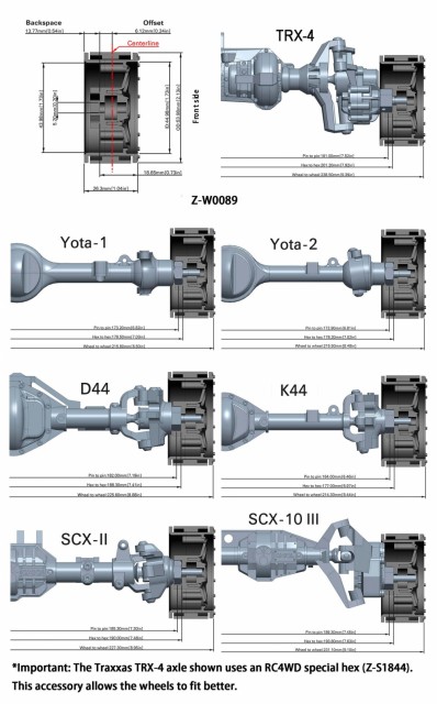 - Installing on Traxxas TRX-4 trucks requires the RC4WD 12mm Wheel Hex Conversion for Traxxas TRX-4 (Z-S1844)