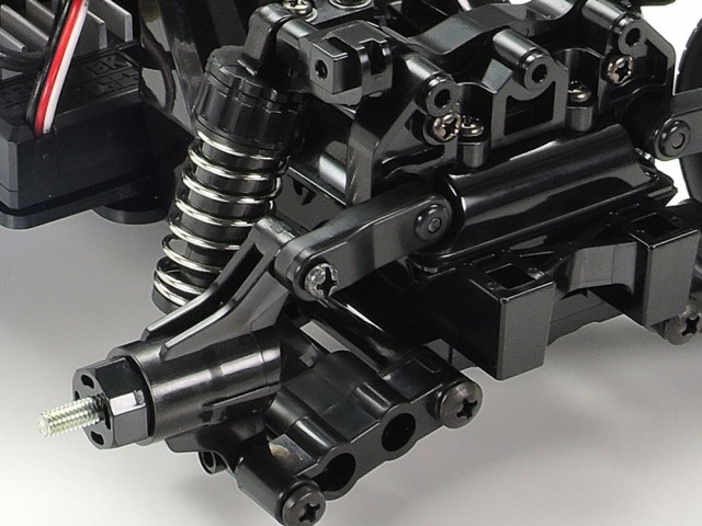 ★Left: A centerline steering servo is at the heart of the 3-piece steering tie-rod for superb response.