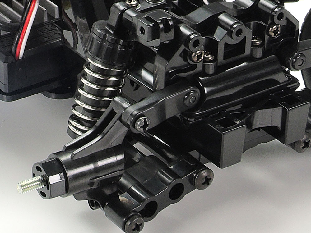 ★Right: This image gives a closer look at the front double-wishbone suspension with friction dampers.