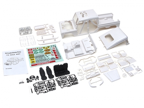 This is a 1/10 Team Raffee Co. D110 6x6 pickup truck hard body kit for Boom Racing BRX02 chassis.